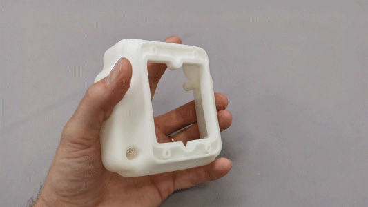 Powder residue – SLS Flexible TPU is much harder to clean than PA12 or PA11 – the powder tends to stick to it more, especially in small holes, cavities or channels. More basic geometries work much better for cleaning than complex ones.