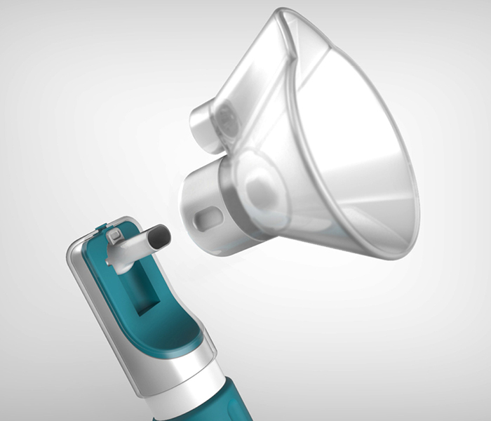 The scenario has been broken down into 8 simple self guided steps. The design reduces the actuation force and allows the child to intuitively actuate the device using a multi-directional sleeve. The mouthpiece folds out for improved lip seal ready for inhalation. The use of haptic feedback patterns helps the child maintain the correct compliance. After inhalation the child can fold down the mouthpiece and twist the cap for storage.