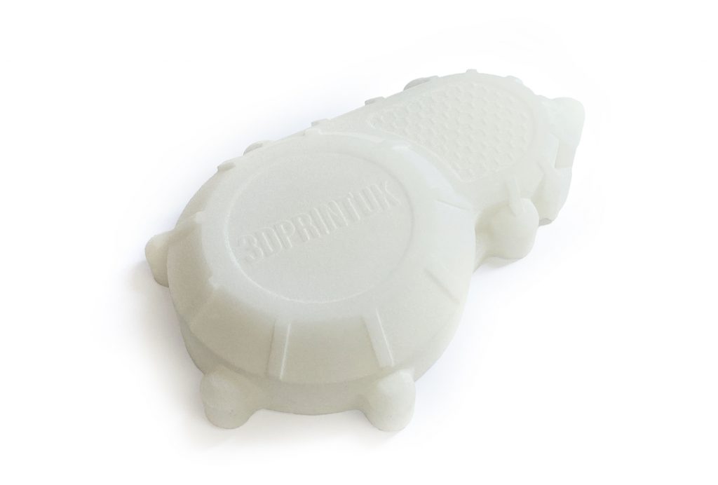 Our SLS Flexible TPU material is the only elastomer in our portfolio. Its rubber-like properties make it the most flexible material we offer. Parts made from this white material are extremely hydrolysis-resistant, with high resilience and excellent tribological properties. The degree of flexibility can be influenced by part design and can even be varied within the same part with lattice structures.